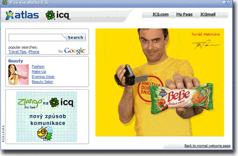 PUkázka bannerové reklamy (formát Takeover) na přihlašovací stránce do služby ICQ